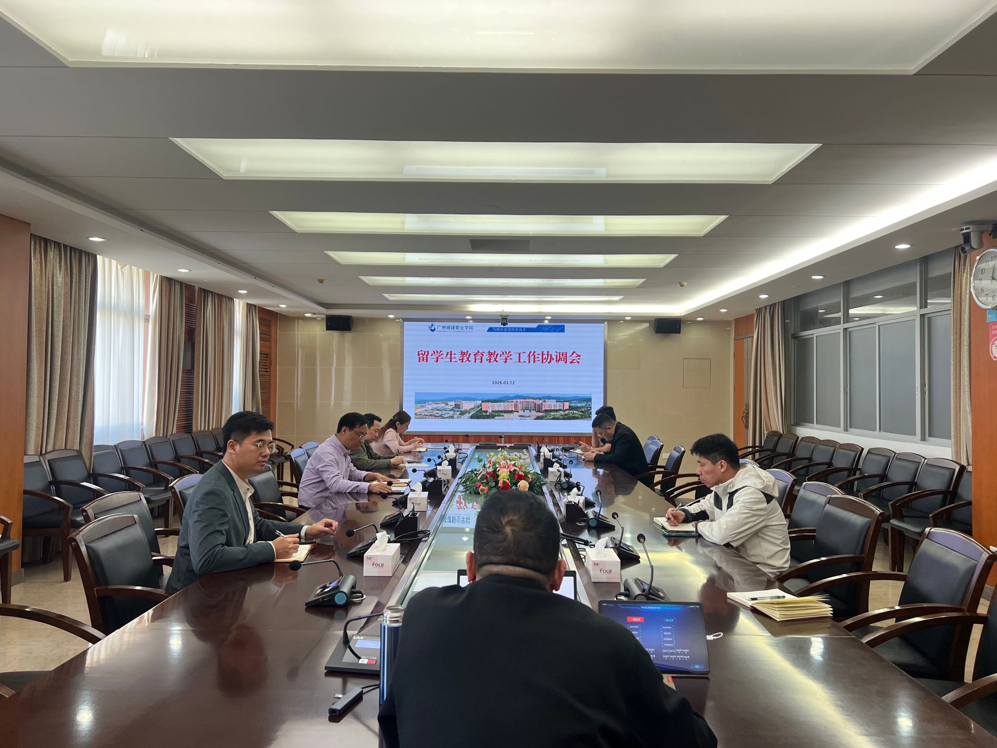 为进一步规范留学生教育教学管理,凝聚部门工作合力,推动学校国际教育事业稳步发展,3月12日,学校在行政楼501会议室召开了2026年度春季学期留学生教育教学工作协调会。会议由鄢维峰副校长主持,数字媒体与教育学院、继续教育学院、外事办全体人员及各相关职能部门负责人参会。